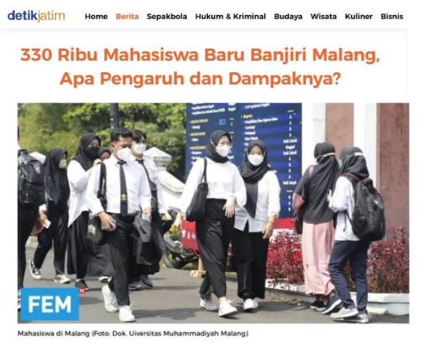 Jumlah Mahasiswa di Kota Malang lebih dari 300.000
