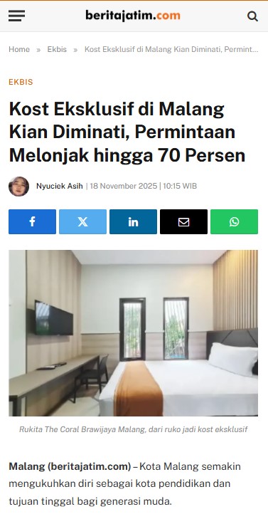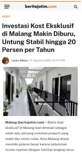 Mahasiswa terus datang puluhan ribu setiap tahun di Kota Malang, sehingga kebutuhan akan rumah kost tidak pernah berhenti.